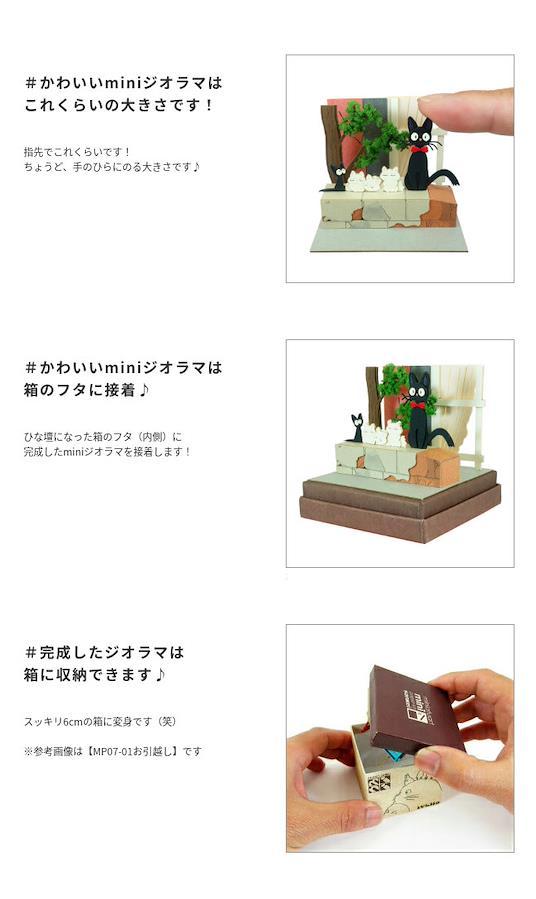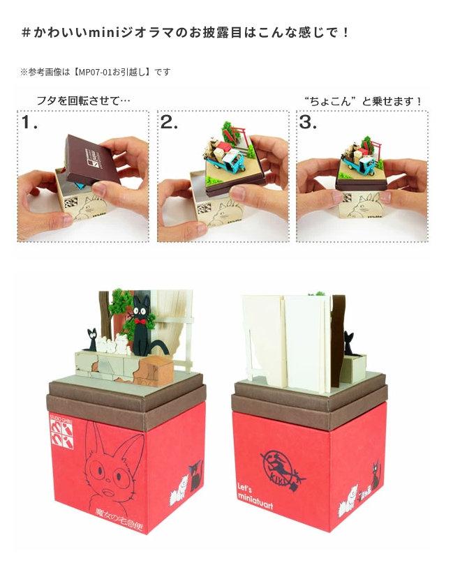 スタジオジブリminiは1辺6cmの箱の上に小さなジオラマが作れるペーパーキットです♪完成すると「魔女の宅急便」の世界がコマ送りのようにお楽しみいただけます☆ ※こちらの商品は組立てペーパーキットです。完成品ではございませんのでご注意ください。■商品名 スタジオジブリmini 魔女の宅急便 ジジと子猫たち■コピーライト © 1989 Eiko Kadono - Studio Ghibli - N■セット内容 レーザーシートA~N(14枚)、ベース(1枚)、スポンジ、組み立て説明書■スケール Non-scale■サイズ W60×D60×H60(108)mm ※内はジオラマを乗せた時の寸法です■対象年齢 12才以上■組立て所要時間 2時間~■組立てレベル ★☆☆☆☆■みにちゅあーとキットとは? ミニチュア制作の経験のない方でも、扱いやすい“紙” 素材で出来たECOペーパーキットです。製作道具はカッターナイフ、ピンセット、接着剤、定規、カラーペンなどがあれば作れますよ~♪