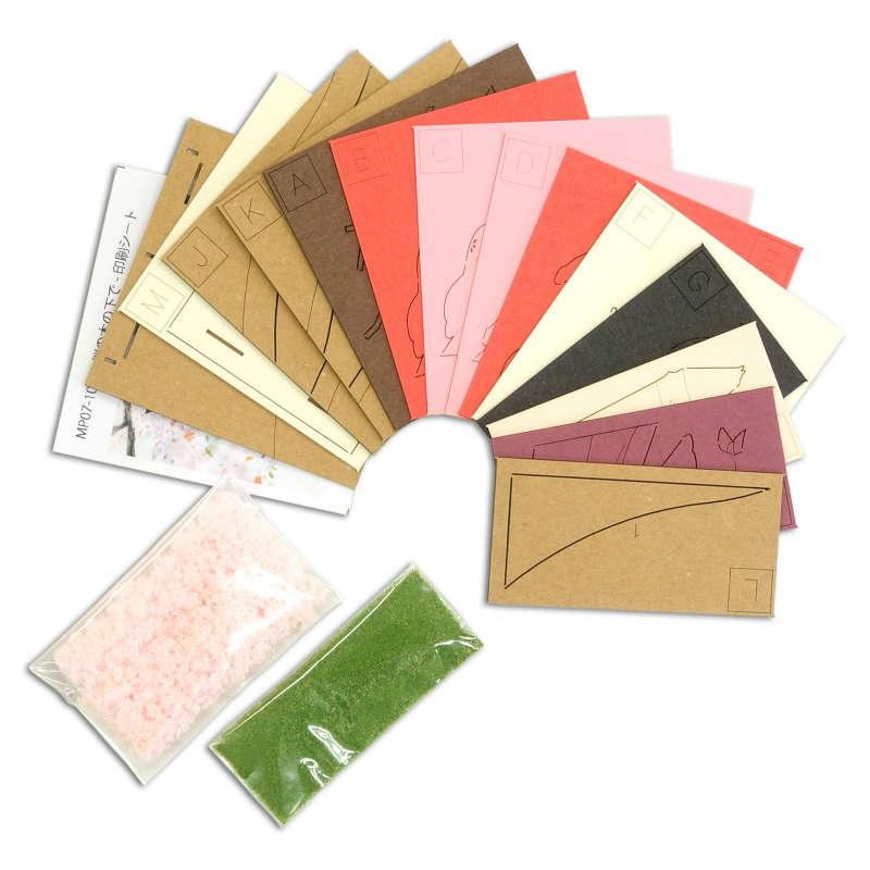 ■セット内容:レーザーシートA〜M(13枚)、ベース(1枚)、印刷シート(1枚)、スポンジ、パウダー、組立て説明書