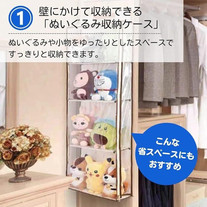 「常に綺麗な状態でぬいぐるみを保管」クリアカバーのため収納したぬいぐるみを常に見ることができるうえ、綺麗な状態を保つことができます。