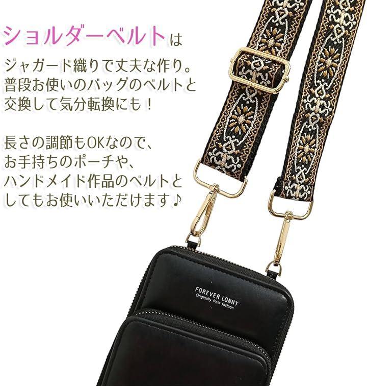 (1) インド刺繍風 ジャガード織りショルダーベルト 肩掛け・斜め掛けOK。 個性的で華やかなインド刺繍風のデザインが目を引く、丈夫なジャガード織りストラップ。