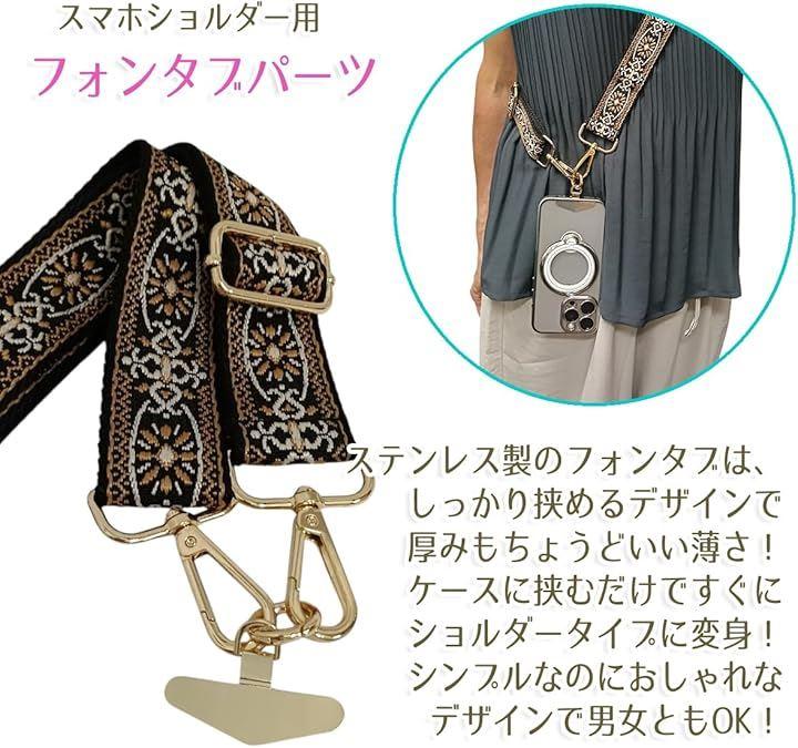 (2) ステンレス製 フォンタブ(スマホ用アタッチメント) スマホケースに挟むだけで、ショルダーベルトやストラップを取り付けられる便利アイテム。