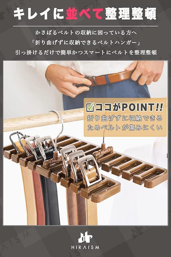 折り曲げずに収納できるため傷みにくく、引っ掛けるだけで簡単かつ綺麗にベルトの整理整頓ができます。