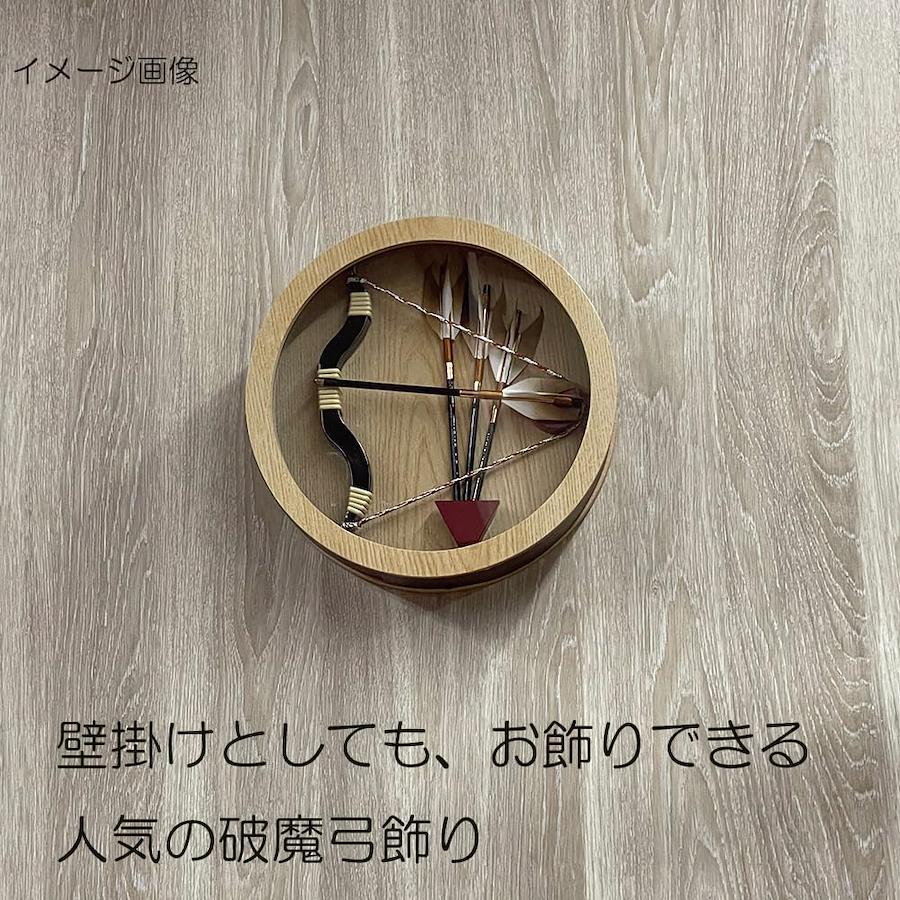 破魔弓飾りとは、古く中国では、初正月の端午の節句に「鍾馗(しょうき)」と呼ばれる力の強い武神が現れ、古来では弓で悪霊を平らげるという言い伝えがあったといいます。このような風習が日本の宮中にも伝えられ、弓で的を射る「射礼」や「大射」などの儀式が行われていました。平安の中期の頃、以降に神社などでは魔除けの意味での破魔弓神事や、年占い神事等が斎行されてまいりました。江戸時代に入ると破魔弓は飾り物・贈り物・縁起物として盛んとなり、初正月飾りの代名詞として、いまも変わらず受け継がれ、男児の初正月には、雄々しく、力強く、健やかに育てとの願いをこめて破魔弓は飾られています。日本では古くからこの初正月を祝い、赤ちゃんの祖父母や、父方、母方のおじやおば、仲人、両親、親戚、親しい友人などが、女の子には羽子板を、男の子には破魔矢・弓をお祝いとして用意し贈るという美しい習慣があります。北海道・東北・北陸・関東・東京・東海・近畿・関西・京都・中国・四国・九州・沖縄など地域および、地方の文化・風習が大きく異なる場合がございます。購入前に届けの予定の地域性をご確認ください。 サイズ:横幅21 奥行12 高さ23cm 壁掛けの時の重量は約550グラムの軽量設計。 前面はアクリルケースで安心 破魔弓コンパクトサイズでおしゃれな壁掛け飾りの破魔矢。 タペストリー風に飾れるお品です。 人気の丸型で飾る場所が玄関の下駄箱などでも、省スペースで飾れる ミニサイズの破魔弓飾り。 男の初正月のお祝いに人気なアイテムです。 破魔弓久月取扱店 破魔弓 コンパクト ミニ 壁掛け アクリル 木製 モダン 御祝 男の子の魔除けの初正月飾りです。破魔弓(破魔矢)の通販販売店。初正月の破魔弓購入の選び方に迷われたら弊社にお任せ下さい。 破魔弓コンパクトサイズから本格大型サイズまで取り揃えております。破魔弓久月作を初め平安豊久・宝童作等取扱 割安い破魔弓から高級黒檀・鉄刀木まで取り扱っております。