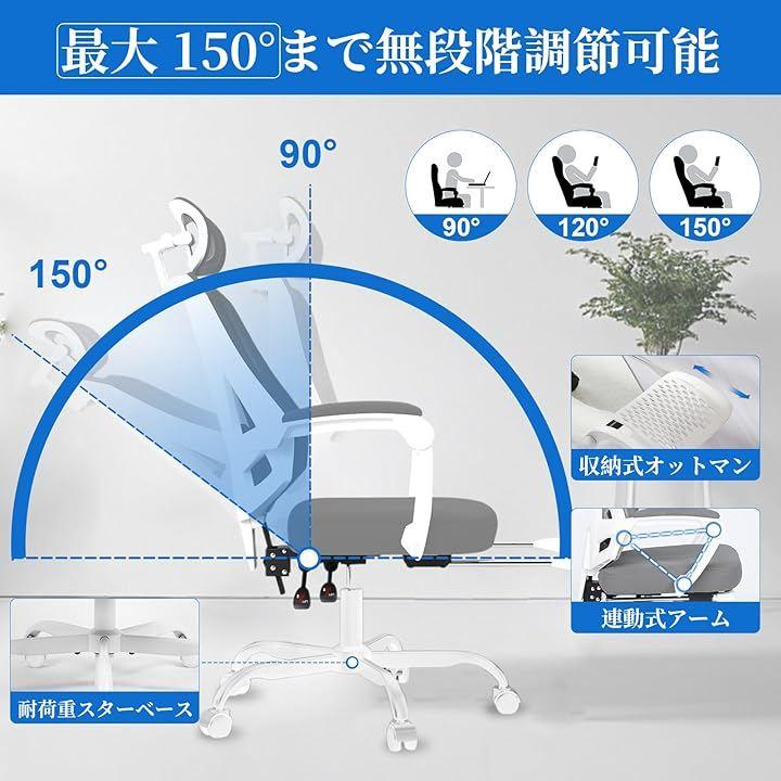 「150°無階段リクライニング」ワンタッチ操作で最大150°までリクライニング可能。