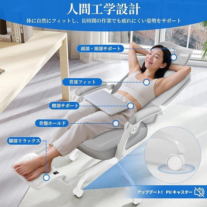 付属の伸縮式フットレストを引き出せば、オフィスでの仮眠やリラックスタイムにぴったりのオフィスチェアに早変わり。