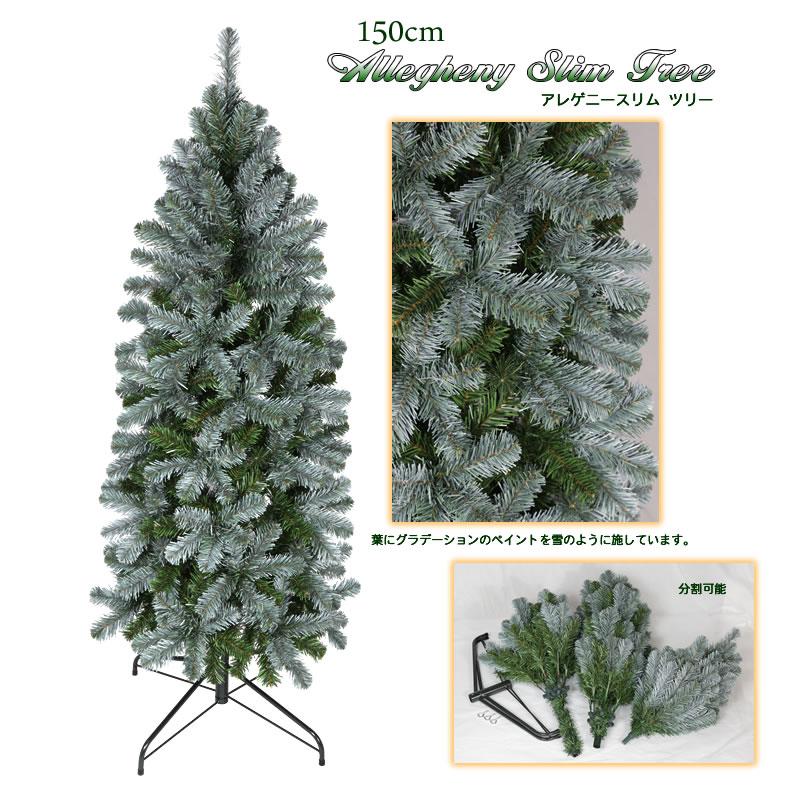 人気商品のため、サイズを増やして150cm・180cm・210cmの3サイズとなりました。葉先には、手作業でペイントしていますので、グリッター等の粉の落ちる心配はありません。また、白くペイントしたことで、電球を装着しただけでも、それなりに美しく、ご鑑賞いただけると思います。もちろん、一般のご家庭でも飾っていただきたいです。ちなみに、アレゲニーとは山脈の名称です。
