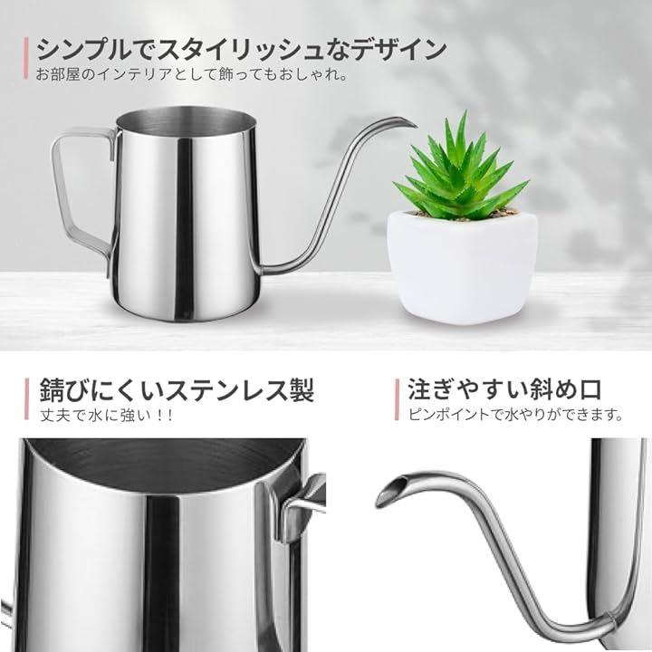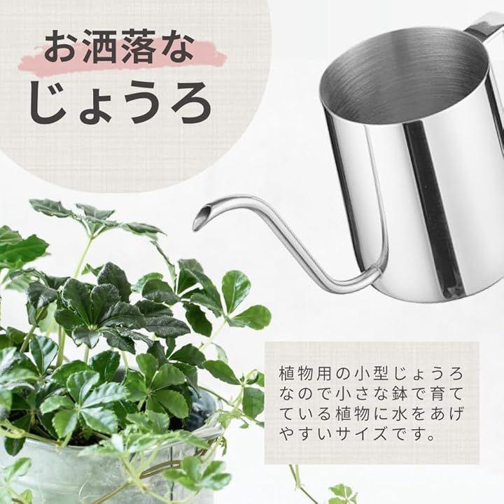 「スタイリッシュなシルバー」高級感あるシルバーでコンパクトなジョウロは自宅やオフィス、お店においてある小さな花、花瓶、観葉植物、盆栽、プランター等の水やりに最適。