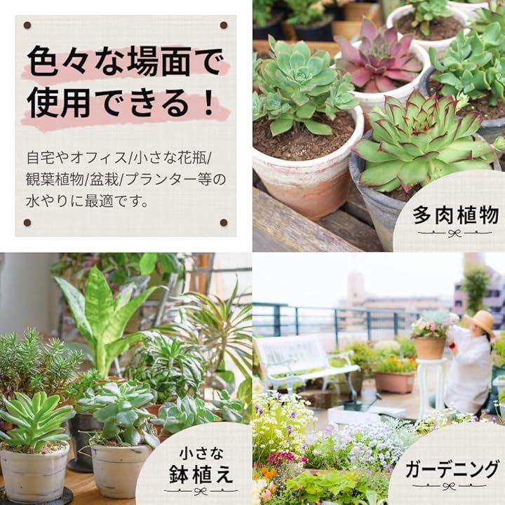 大きめのジョウロでは水を上手くあげれなく苦手な水やりも本製品に替えることでコンパクトに水をあげることができ効率よく楽しみながら水やりができます。