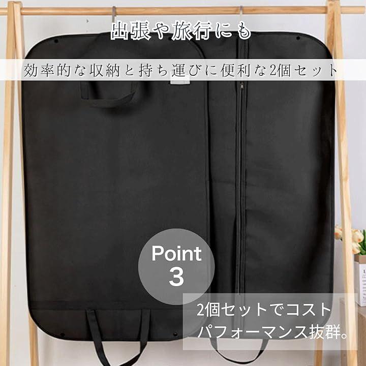 「効率的な収納と持ち運びに便利な2個セット」2個セットにより、スーツやコートを複数収納でき、旅行や出張時にも便利です。