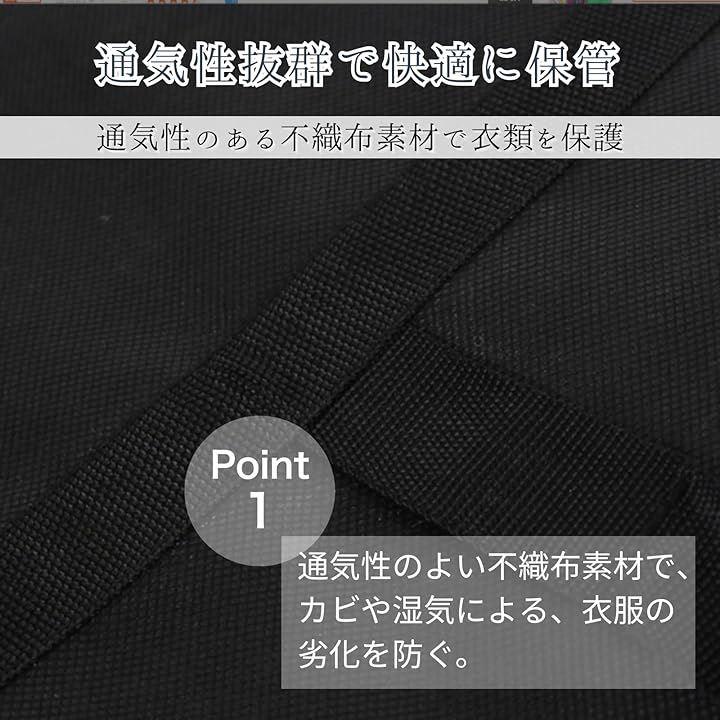 「通気性のある不織布素材で衣類を保護」不織布素材は通気性があり、湿気やカビから衣類を守り、清潔を長期間維持します。