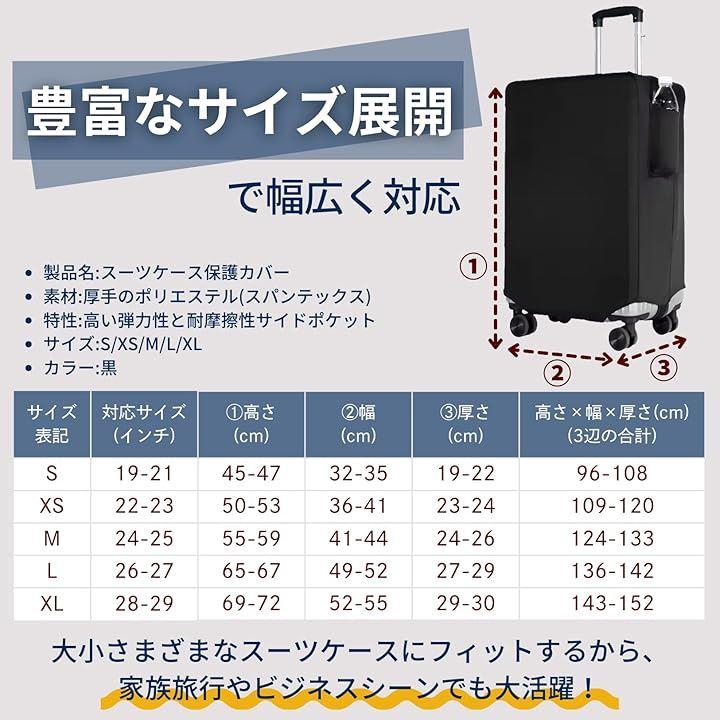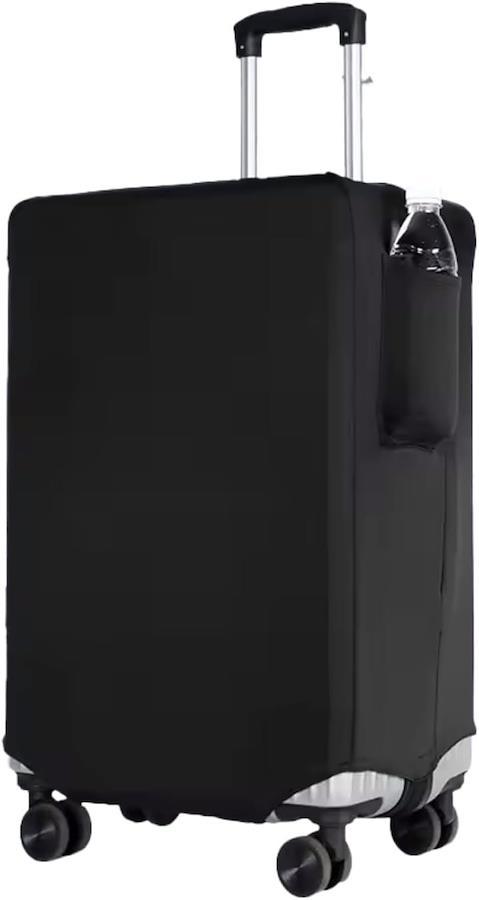 このスーツケースカバーは、伸縮素材でスーツケースにぴったりフィットするだけでなく、便利なサイドポケットを搭載。
