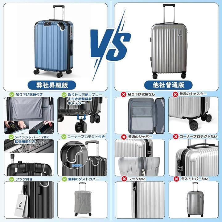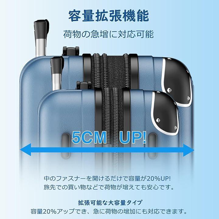 「機内持ち込み可能」サイズ:55.5x36x23(拡張時+5)cm、三辺合計:114cm、機内持ち込み可。