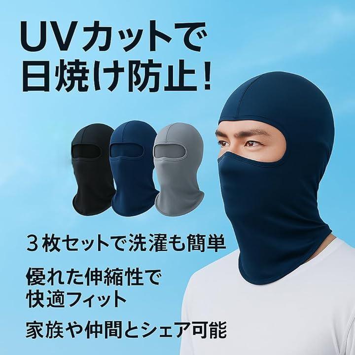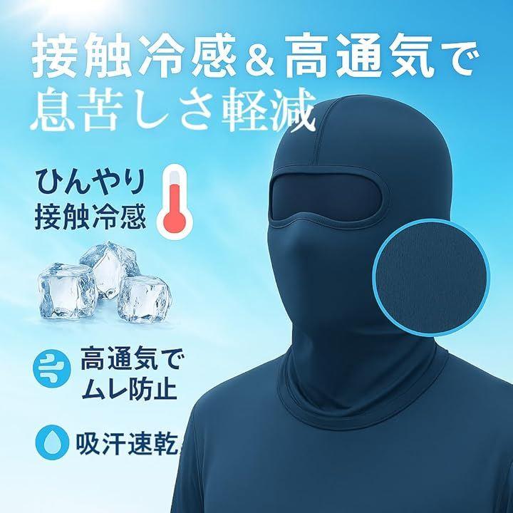 「UVカット&首まで360°ガード」 首元までしっかり覆うフルフェイス設計が、夏の強烈な日差しや照り返しから肌を守ります。