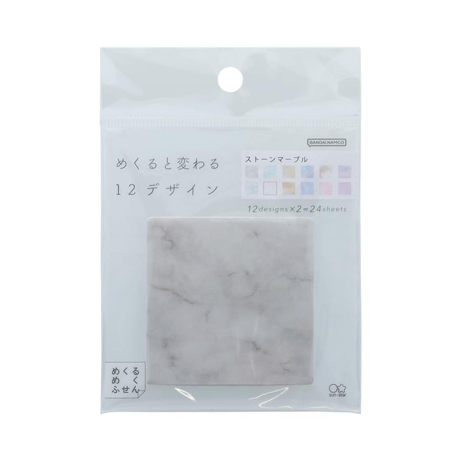 めくるたびときめく紙ふせんめくるめくふせんめくるたびに色やデザインが変わる紙ふせん、[めくるめくふせん]。 カラーテーマは、ストーンマーブル。大理石をモチーフにしたカラフルなストーン柄。 ちょっとしたプレゼントやメッセージを残すのにぴったり!"めくる"たび、とき"めく"12デザイン。めくるたびに異なる色やデザインを楽しめます。糊面が大きいので、しっかり貼れて、?がれにくく安心です。