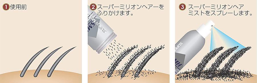 ブランド スーパーミリオンヘア商品の重量 30 グラム商品の形状 粉末対象年齢 大人商品の推奨用途 増毛・ボリュームアップ