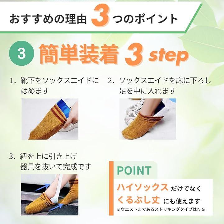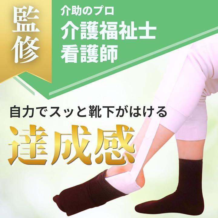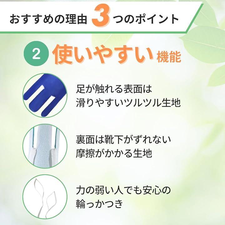 内側は滑りやすい布、外側は滑り止め布で覆われており、途中で靴下が脱げることがなく安心して靴下を履くことができます。