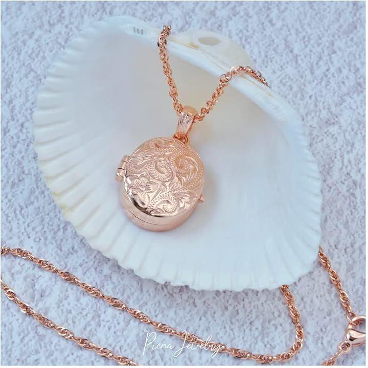 ロケットペンダントならではの重厚感とハワイアンジュエリーの繊細さ。