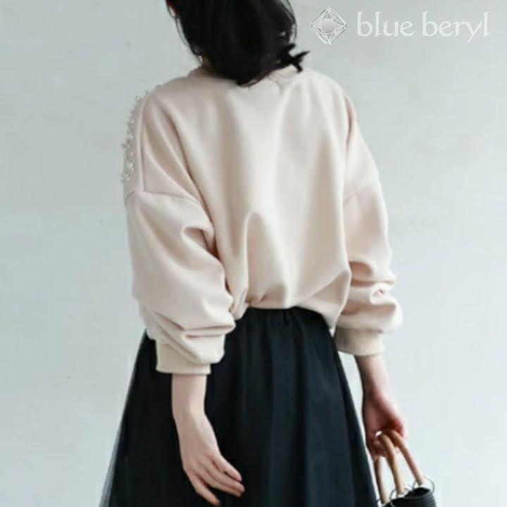 「フェミニンさ添えるパールディテール」 シンプルなスタイルに、オフショルダーのボリュームあるスリーブがこなれ感をプラスして。