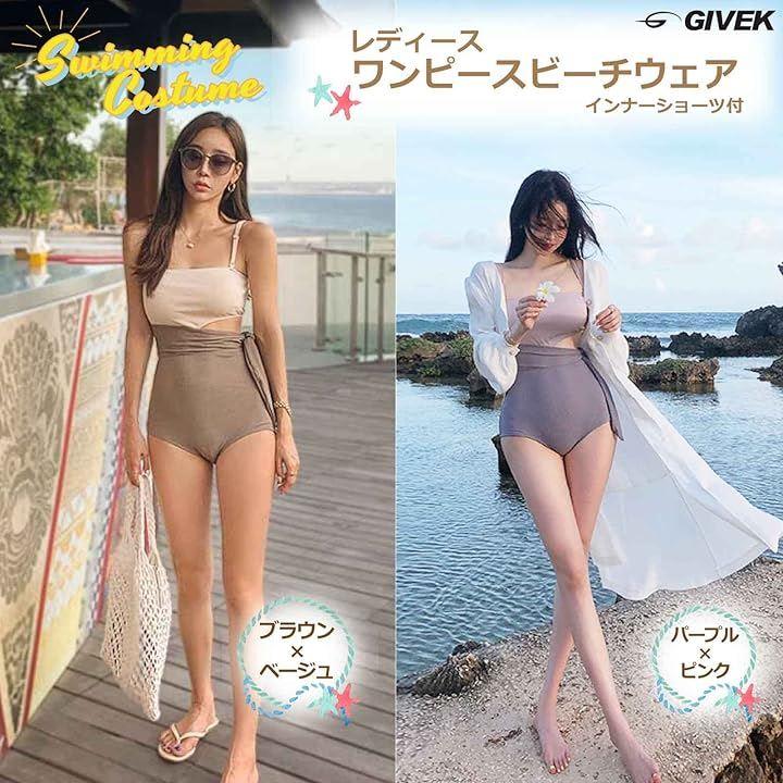 v「レディース 水着 ワンピーススピーチウェア」可愛いワンピース水着*インナーショーツ付き でセクシー差も*の上下セットワンピース水着*