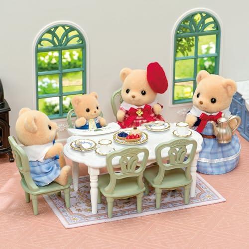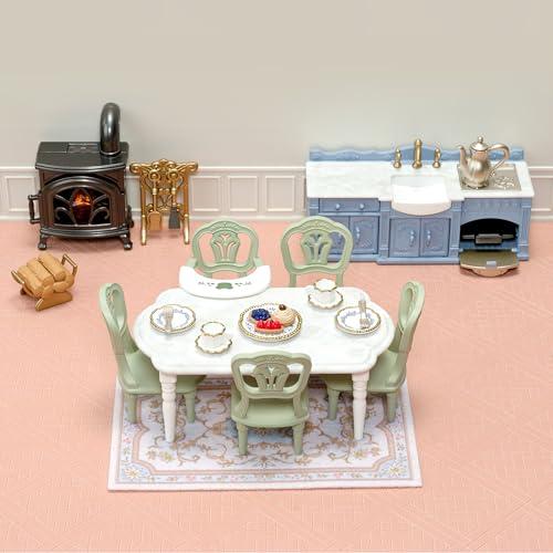 *Perfect dining room set for "Red Roof House with Sparkling Water" * Marble pattern on the kitchen or dining table The painting plates and other accessories are delicate and beautiful. *Stove is lit up without batteries Able to fizze. * Baby chair can swing and play. Can be attached to the dining table. * Kitchen sink faucet and lever can be turned left or right Baking fun on the stove or in the oven. *Pot can be held by adult dolls. *Pretend play is even more fun when playing with the "Red Roof House on the Water" and "Biscuit Bear Family" (sold separately) (C) EPOCH (#lf)(#lf)(#lf)商品購入前に、ストア紹介ページをご確認ください。
