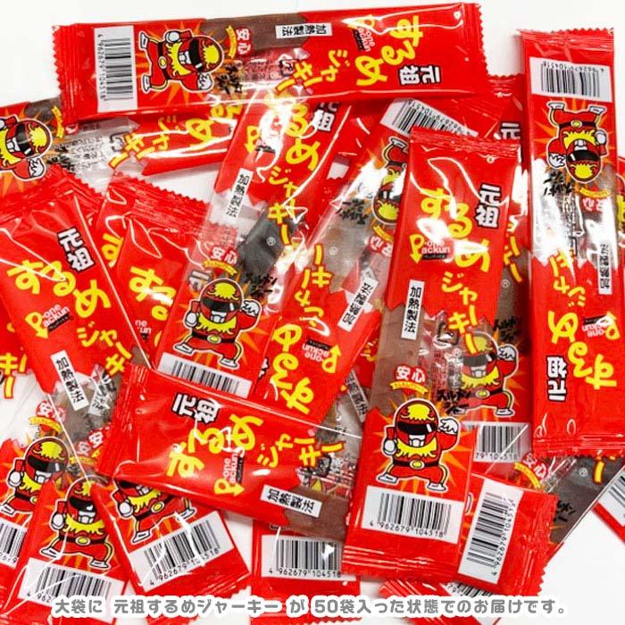 おやつ戦隊のパッケージがおなじみの駄菓子「元祖するめジャーキー」。