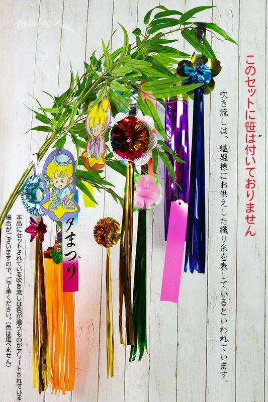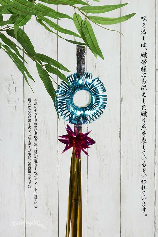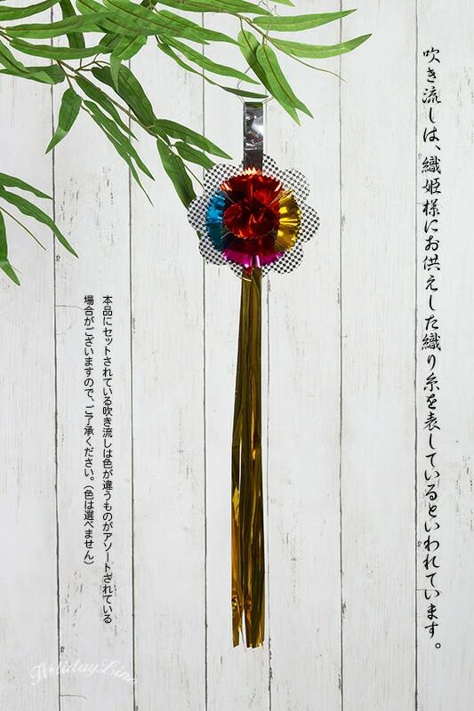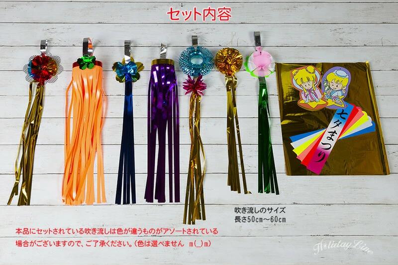吹き流し/7個(フィルム製)短冊/6枚(フィルム製・こより付)織姫カード・彦星カード/各1枚(紙製)金色のフィルム/1枚(ご自由に切ってご使用ください)