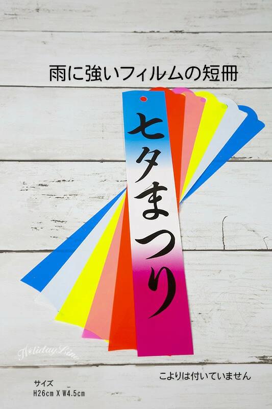 主に七夕飾り用フィルム製の吹き流しセットフィルム製は雨に強い!フィルム製短冊6枚付き(こより付)たくさん飾って楽しく飾りましょう!お子様からシニアまで幅広いニーズに対応ご家庭、幼稚園、保育園、学校、会社、店舗、施設などに!