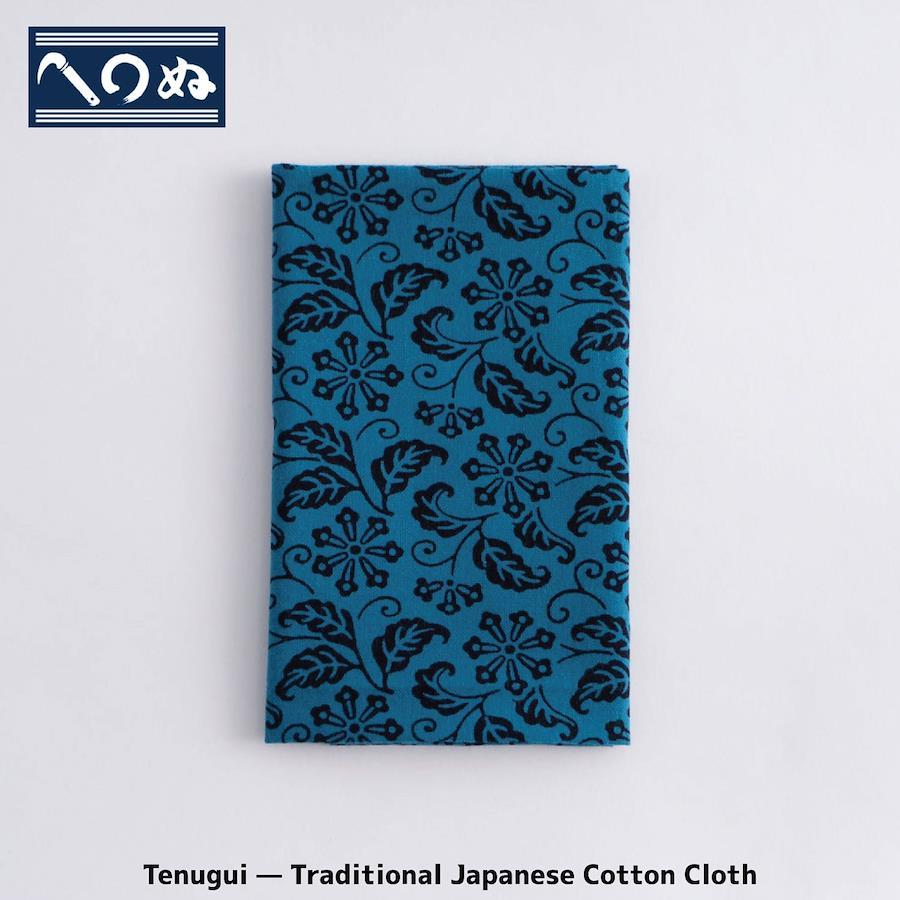 細やかな唐草模様がさりげなく華やかで、キッチンやお出かけ、どんなシーンにも合います。手拭いとしてはもちろん、ランチ包みやタペストリー、首元に巻いてアクセントにしても素敵です。