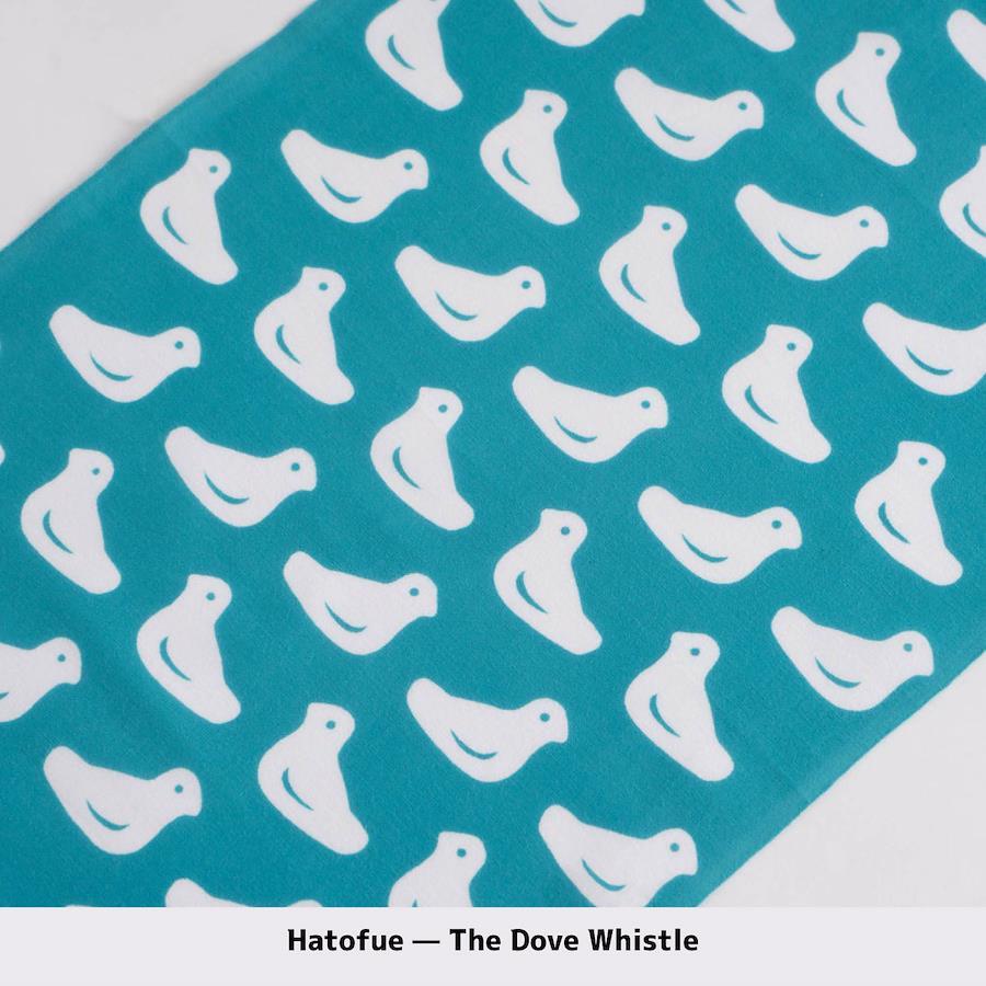 古くから赤ちゃんの健康祈願や魔除けとして親しまれてきた鳩笛のデザインをあしらった手ぬぐい。