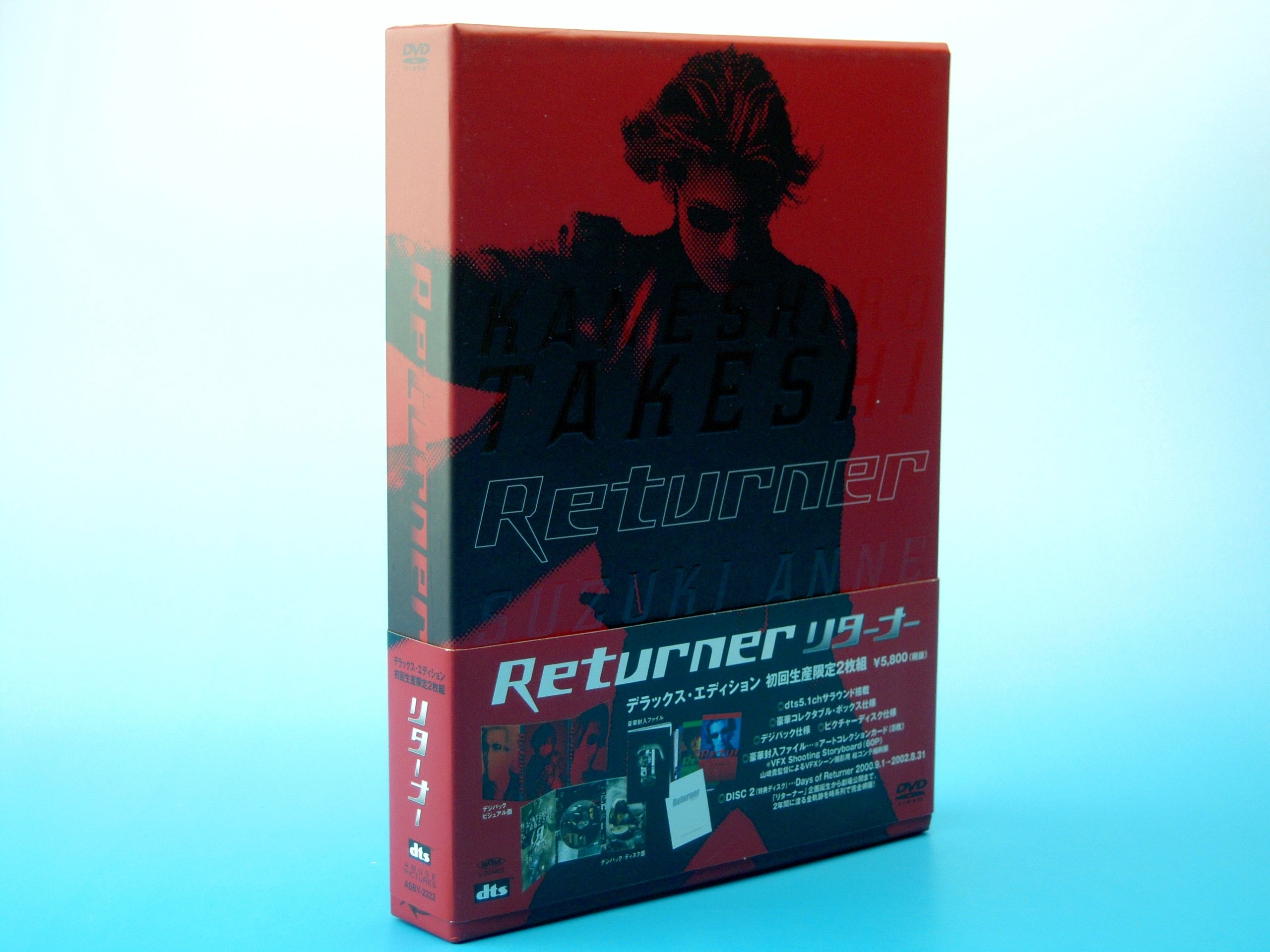 商品紹介2002年の夏に公開の『リターナー』がDVD化決定。特典ディスク付きの2枚組。60時間にものぼるメイキング映像を山崎貴監督が責任監修、『リターナー』2年間の全軌跡を網羅する特典映像満載。【商品内容】・特製コレクタブルボックス ・デジパック仕様・ピクチャーディスク仕様・豪華封入特典【収録内容】■DISC 1:本編(116分)dts5.1chサラウンド搭載 / ピクチャーディスク仕様 / 山崎監督・堀部プロデューサーによる音声コメンタリ-収録 / 劇場特報・予告収録 / スタッフ・キャストプロフィール■DISC 2:特典ディスク(120分)「