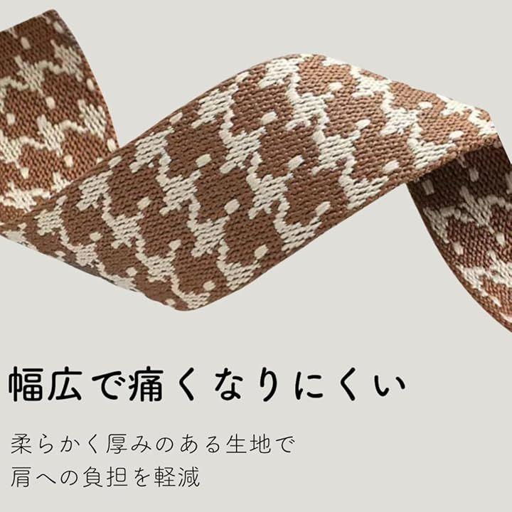「幅広で肩にやさしいデザイン」 約3.8cmの太め設計で、重さをしっかり分散。
