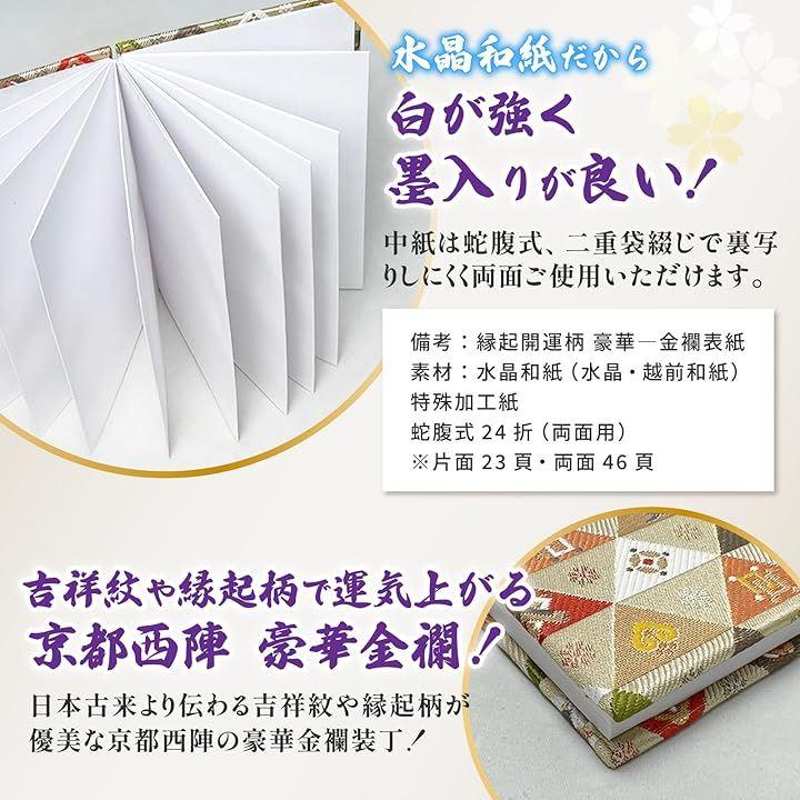 「プレゼントにも」縁起文様を秘める高級金襴表紙であなたの大切な方へのプレミアムなギフトとしても大変喜ばれます。
