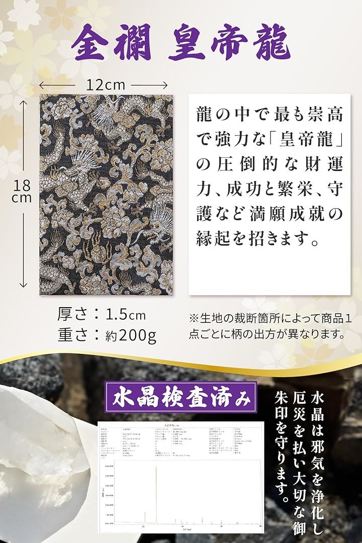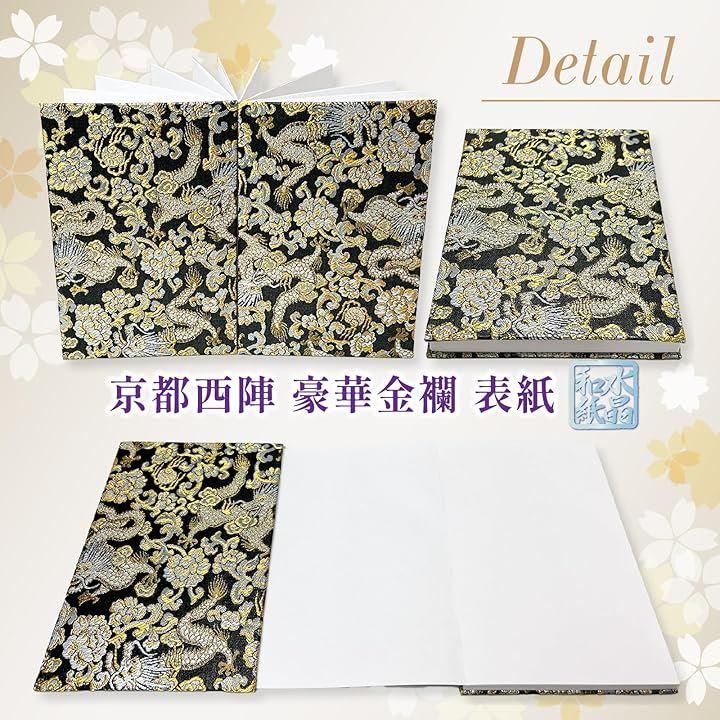 「サイズ」(約)縦18cmx横12cmx厚み1.5cm、重量:約200g 「表紙」京都 西陣 織物 高級金襴 「中紙」水晶入り越前和紙(特殊加工紙)