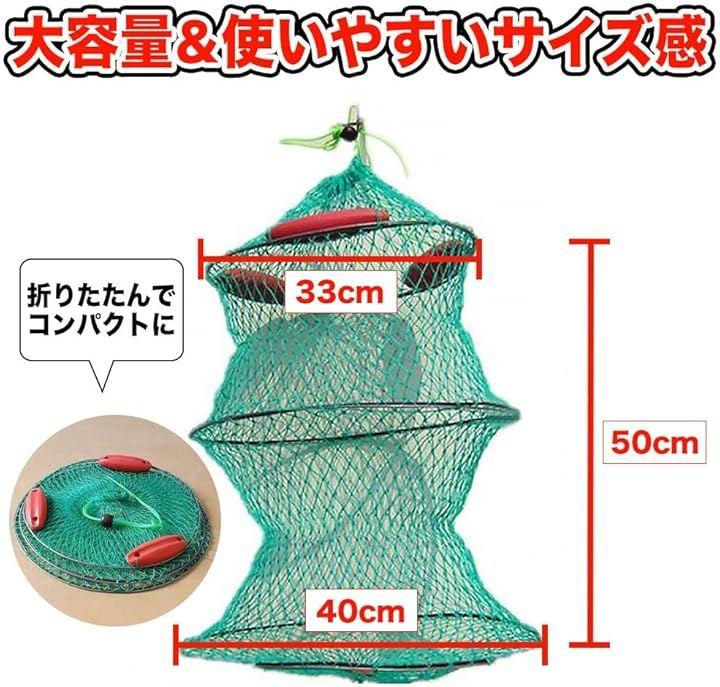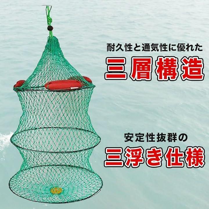 「魚を自然な状態でキープ」 網の内部は魚が泳ぎやすいスペースを確保しており、ストレスを与えず生かしたまま保存可能。