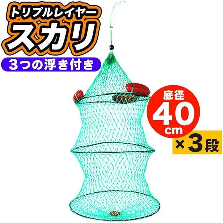 「三浮き仕様で安定感抜群」 浮きが三点に設置されており、網がバランスよく水中に沈む構造。