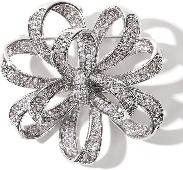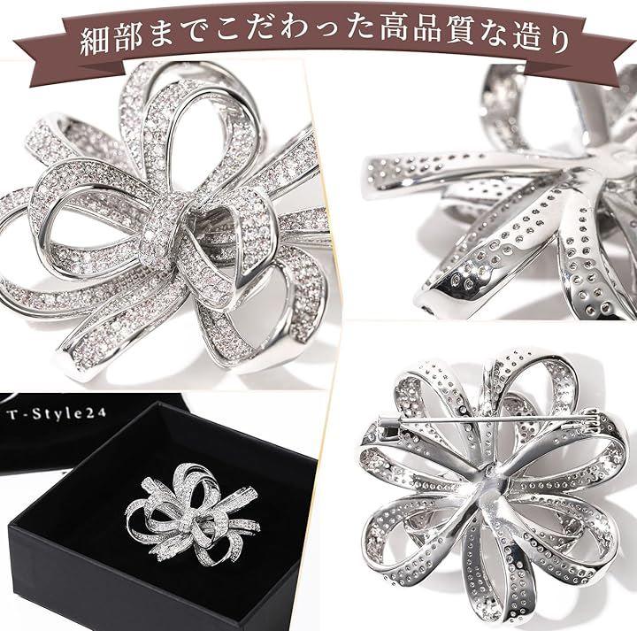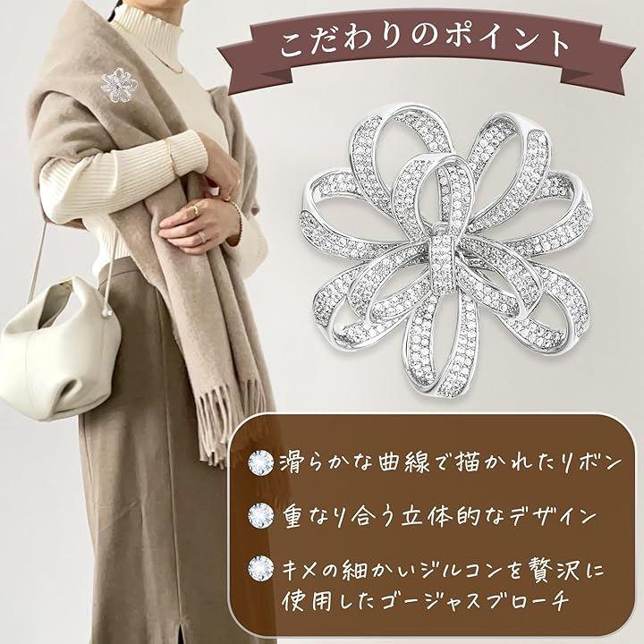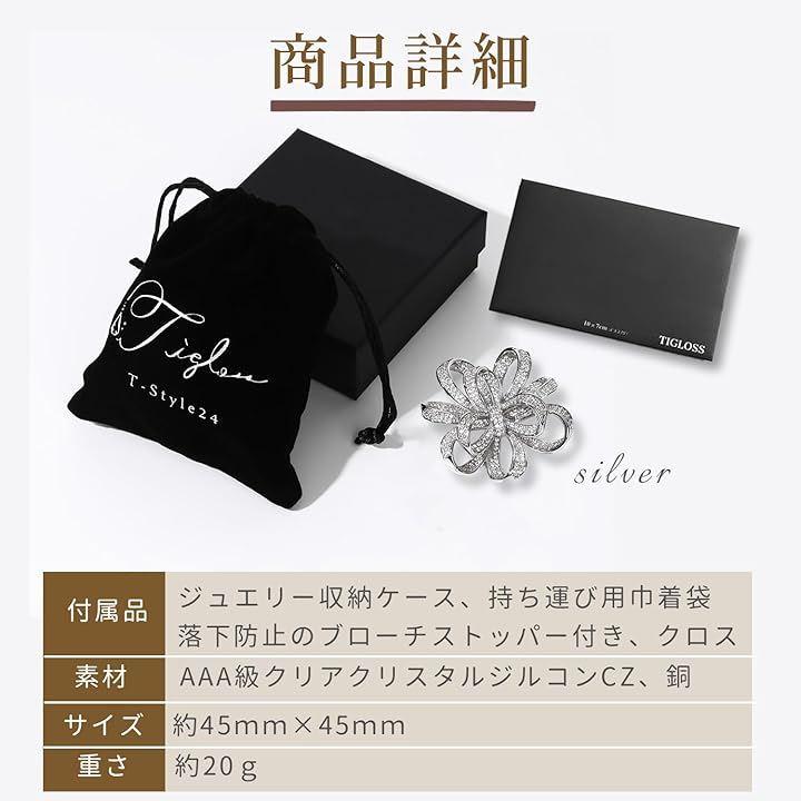 「こだわりポイント」シルバーのAAA級クリアクリスタルのジルコンブローチ。