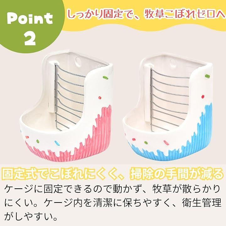 「固定式でこぼれにくく、掃除の手間が減る」留め金付きでケージにしっかり固定可能。