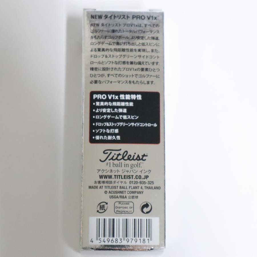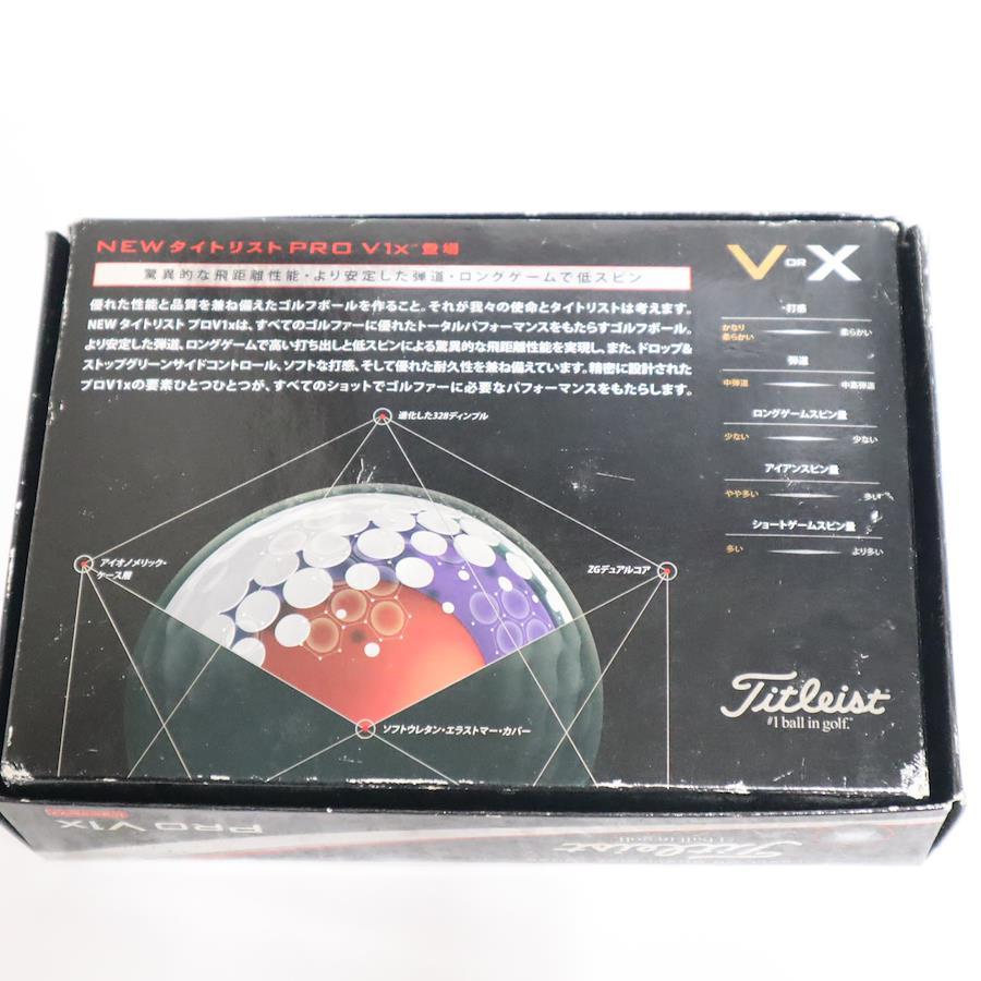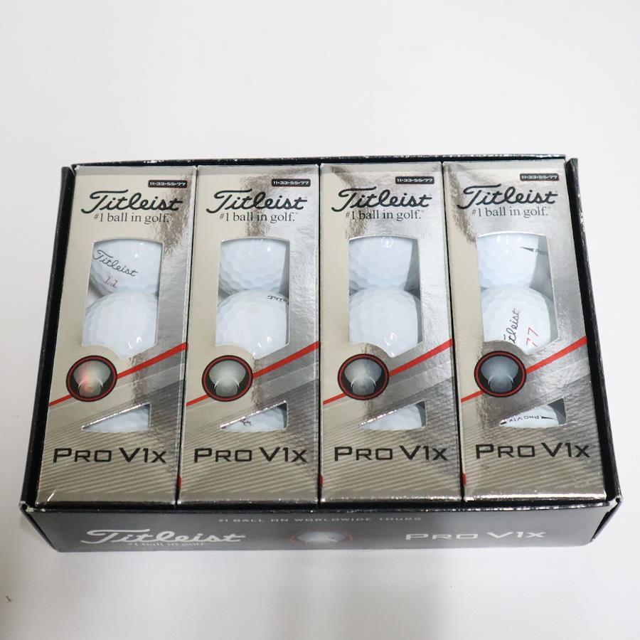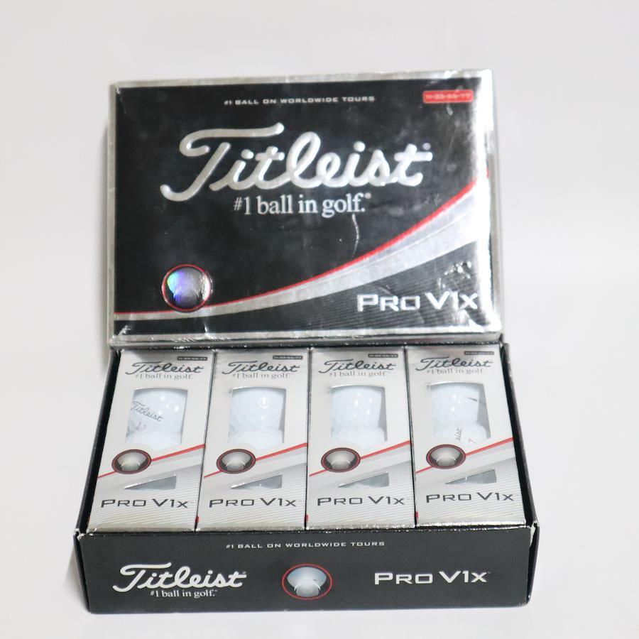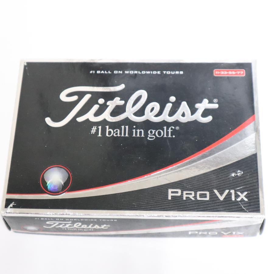 【詳細】■ 商品名・モデル:Titleist タイトリスト PRO V1x ゴルフボール 旧モデル■ ブランド:Titleist(タイトリスト)■ カラー:ホワイト■ サイズ/内容量:1ダース(12球)■ 状態:- 傷・汚れ:ボールは未使用に近い状態。外箱・スリーブ箱にスレ・ヨレあり。- 使用感:実使用は感じられませんが、未使用断定はできないため「未使用に近い」としています。■ 付属品:スリーブ箱(3球×4)■ セット内容:写真のものがすべて