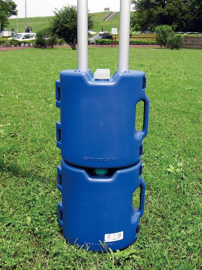 28mm角、40mm丸パイプまで使用可能。注水式の積み重ねが出来るテントウエイト