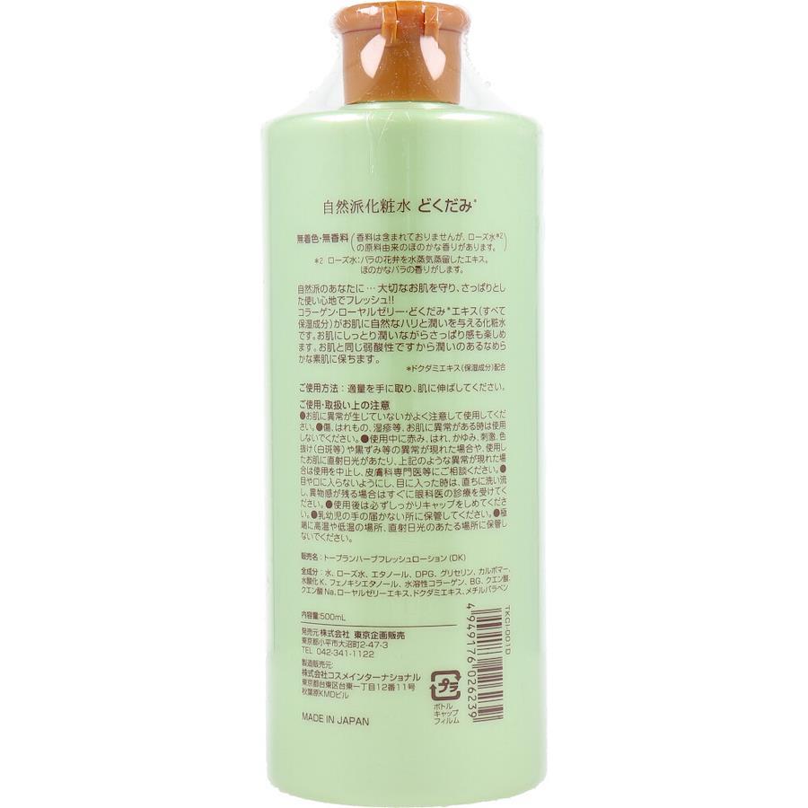 ローズ水※配合で爽やかな香り。●無着色・無香料。香料は含まれておりませんが、ローズ水※の原料由来のほのかな香りがあります。※ローズ水:バラの花弁を水蒸気蒸留したエキス。ほのかなバラの香りがします。●コラーゲン・ローヤルゼリー・どくだみ※1エキス(すべて保湿成分)がお肌に自然なハリと潤いを与える化粧水です。お肌にしっとり潤いながらさっぱり感も楽しめます。●お肌と同じ弱酸性ですからうるおいのあるなめらかな素肌に保ちます。※1ドクダミエキス(保湿成分)配合。