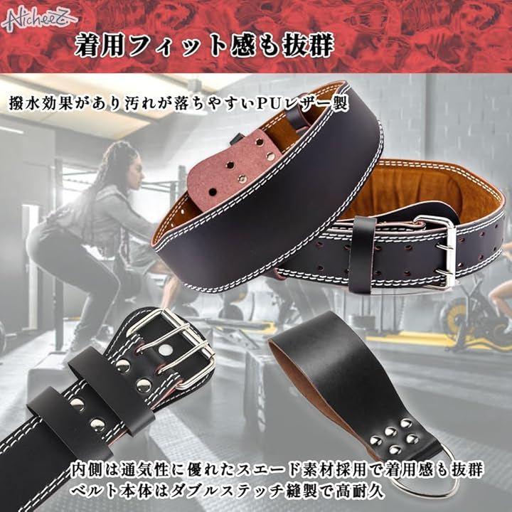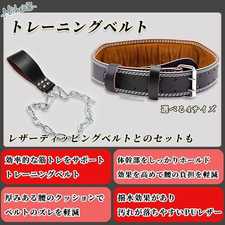 「商品内容」トレーニングベルト+レザーディッピングベルト 材質:PUレザー カラー:ブラック 長さ:S/約100cm M/約110cm L/約120cm XL/約130cm (ディッピングベルト) 材質:牛皮 カラー:ブラック 耐荷重:約15~20kg