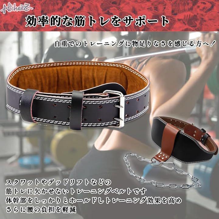 「商品内容」トレーニングベルト+レザーディッピングベルト 材質:PUレザー カラー:ブラック 長さ:S/約100cm M/約110cm L/約120cm XL/約130cm (ディッピングベルト) 材質:牛皮 カラー:ブラック 耐荷重:約15~20kg