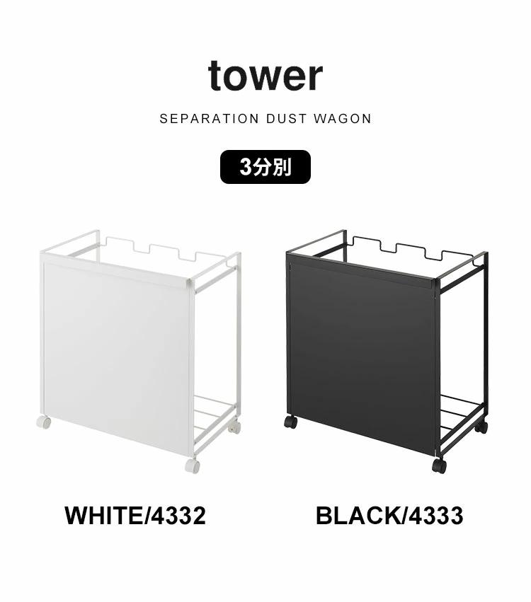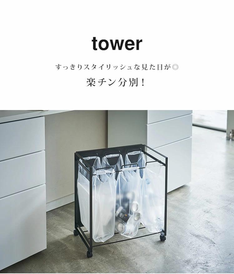 【目隠し分別ダストワゴン 3分別】丁寧な暮らしをするおしゃれさんたちにお届けする、シンプルながらもアイデアのつまったtowerシリーズ。キャスター付きで移動も楽々な目隠し分別ダストワゴン【3分別】ペットボトルとビン、缶など分別して捨てたい時にぴったり。