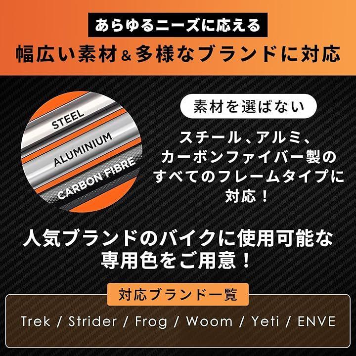 アルミ・スチール・カーボンなど幅広い素材に対応しており、ロードバイクからMTBまで様々な自転車に使えます。