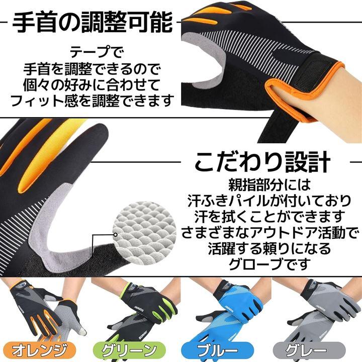 「仕様」サイズ:Mサイズ(手のひら周囲17~20cmに対応)Lサイズ(手のひら周囲19~22cmに対応)、素材:ポリエステル、カラー:オレンジ/グリーン/ブルー/グレー