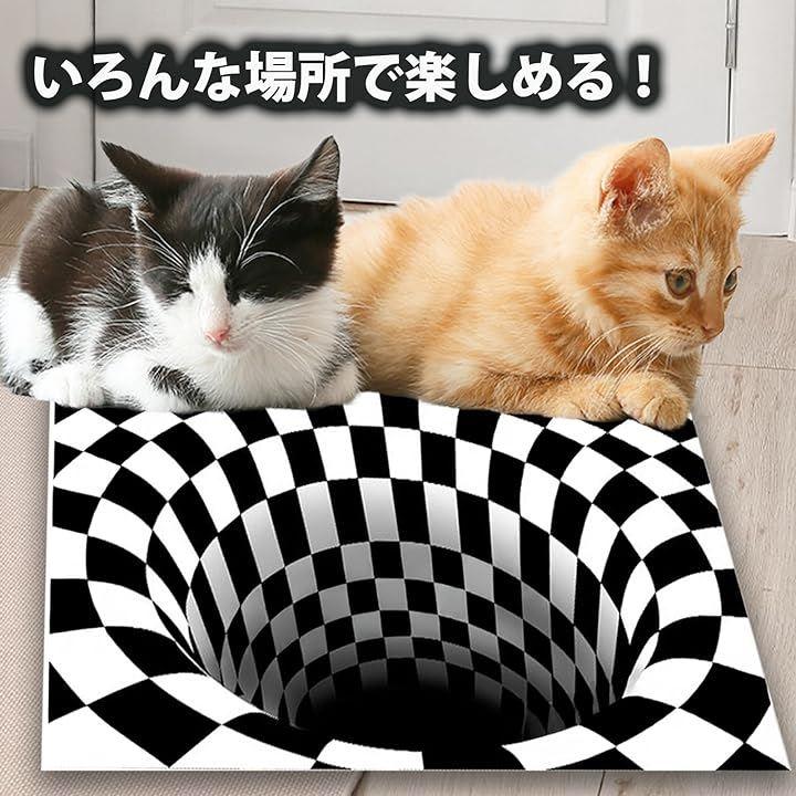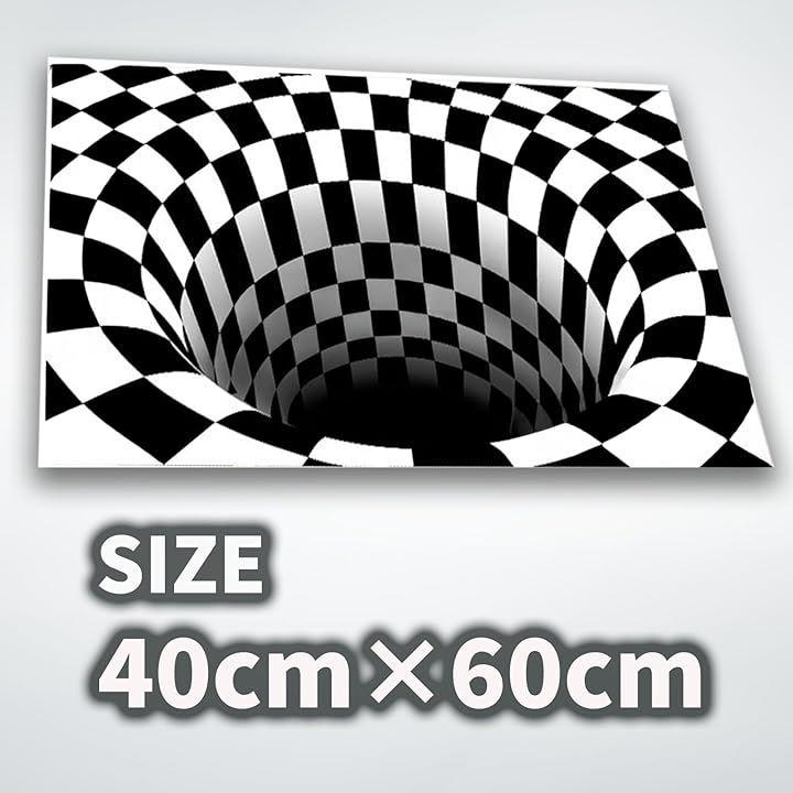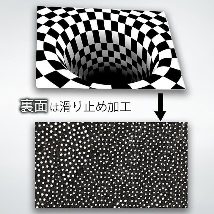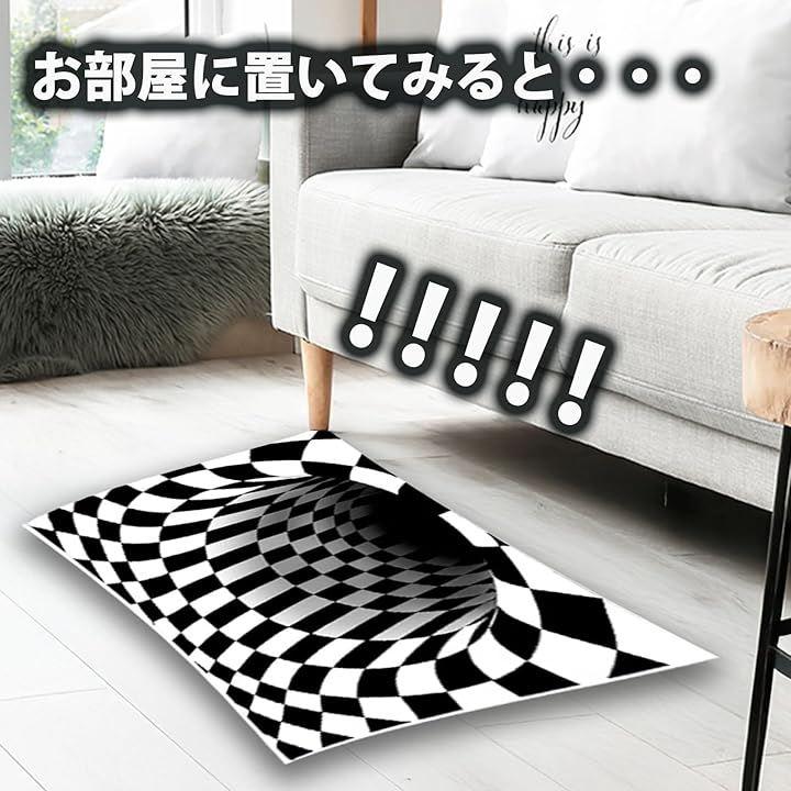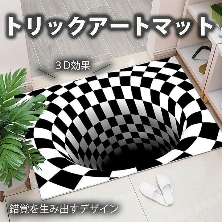 ラグやカーペットとしても使えるデザインで、トリックアートの立体感がインテリアのアクセントに最適です。