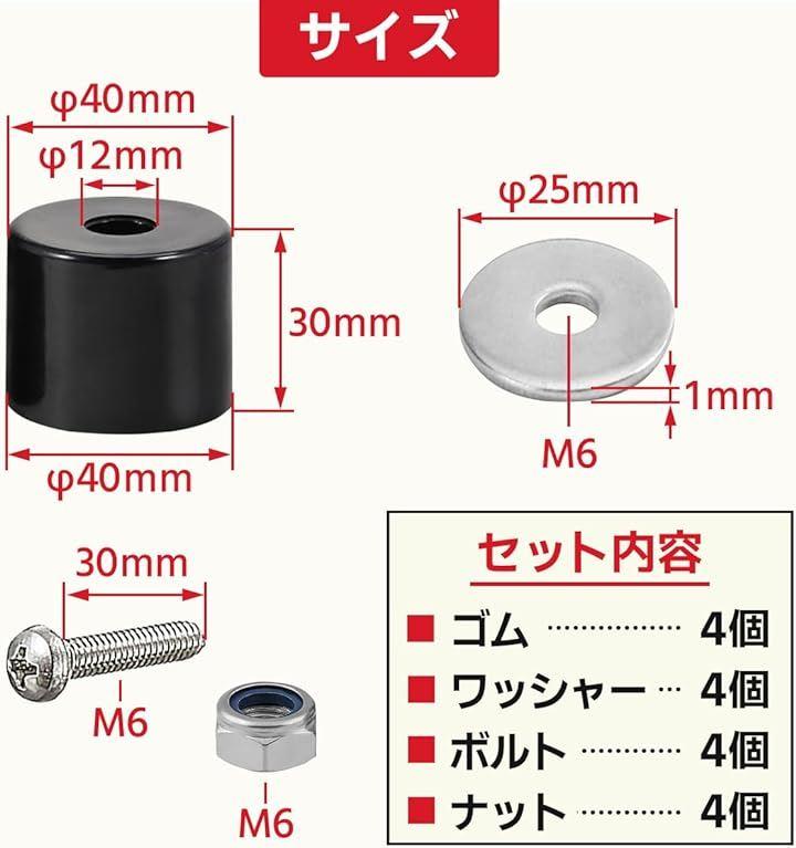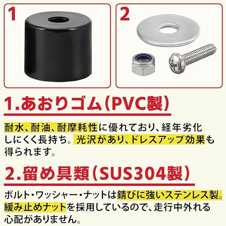 アオリゴム4個入り、ボルト、ナット、ワッシャーのセットなので到着後すぐに取付していただけます。