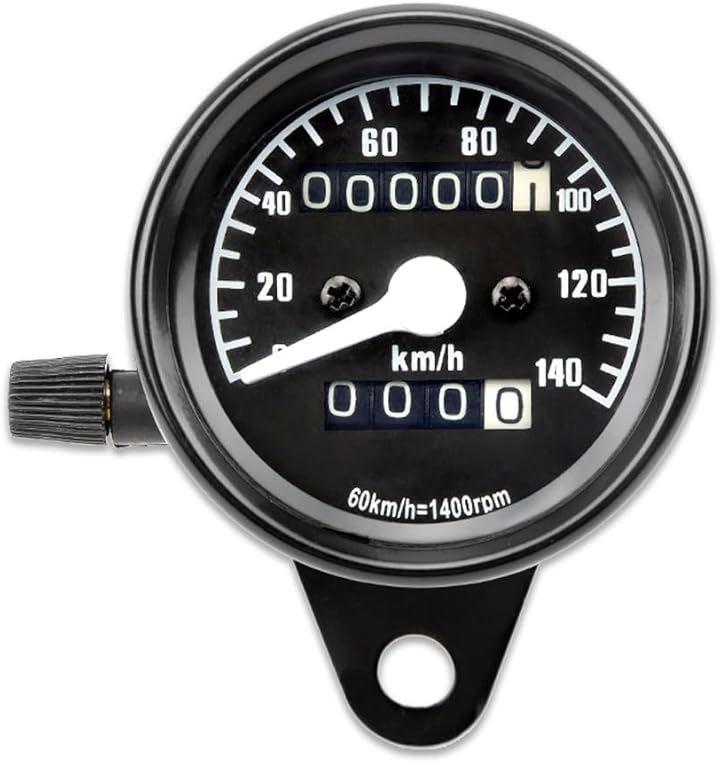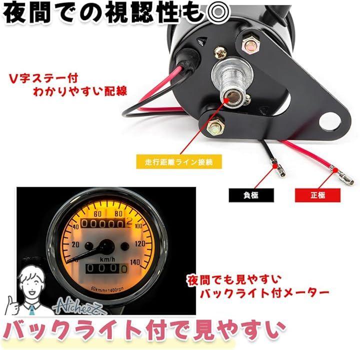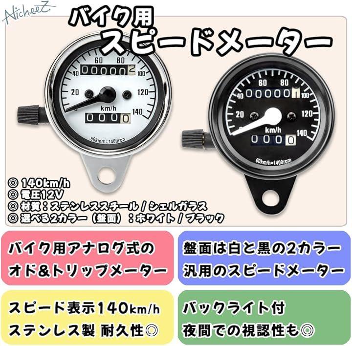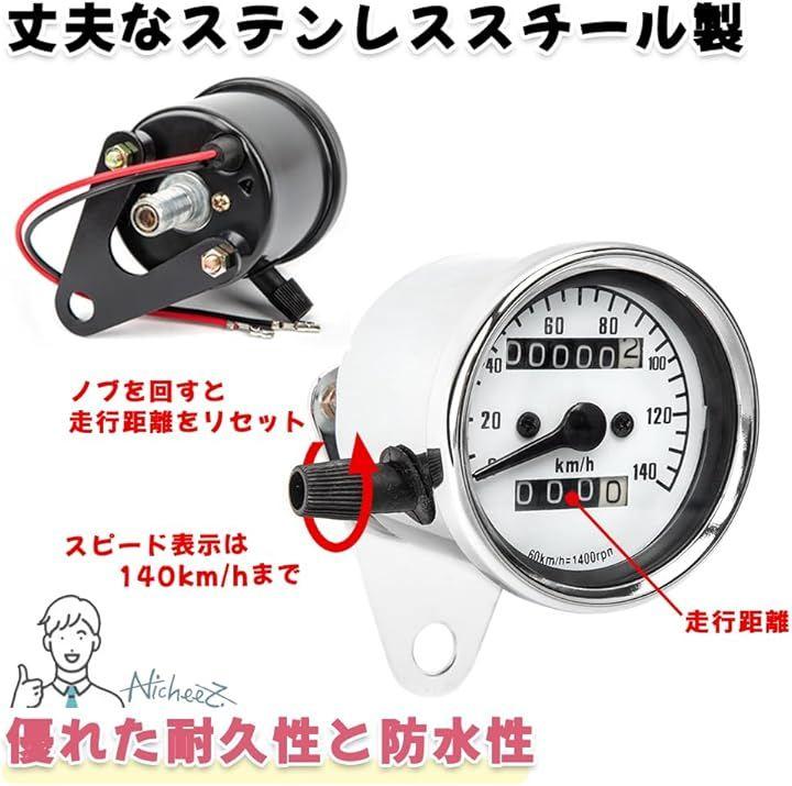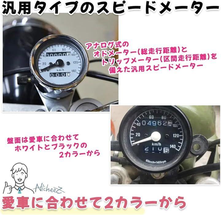 「バイク用スピードメーター」アナログ式オドメーター(総走行距離)とトリップメーター(区間走行距離)機能を備えた汎用バイクスピードメーター。