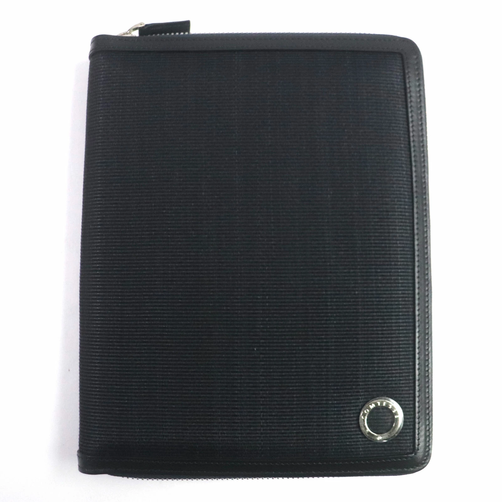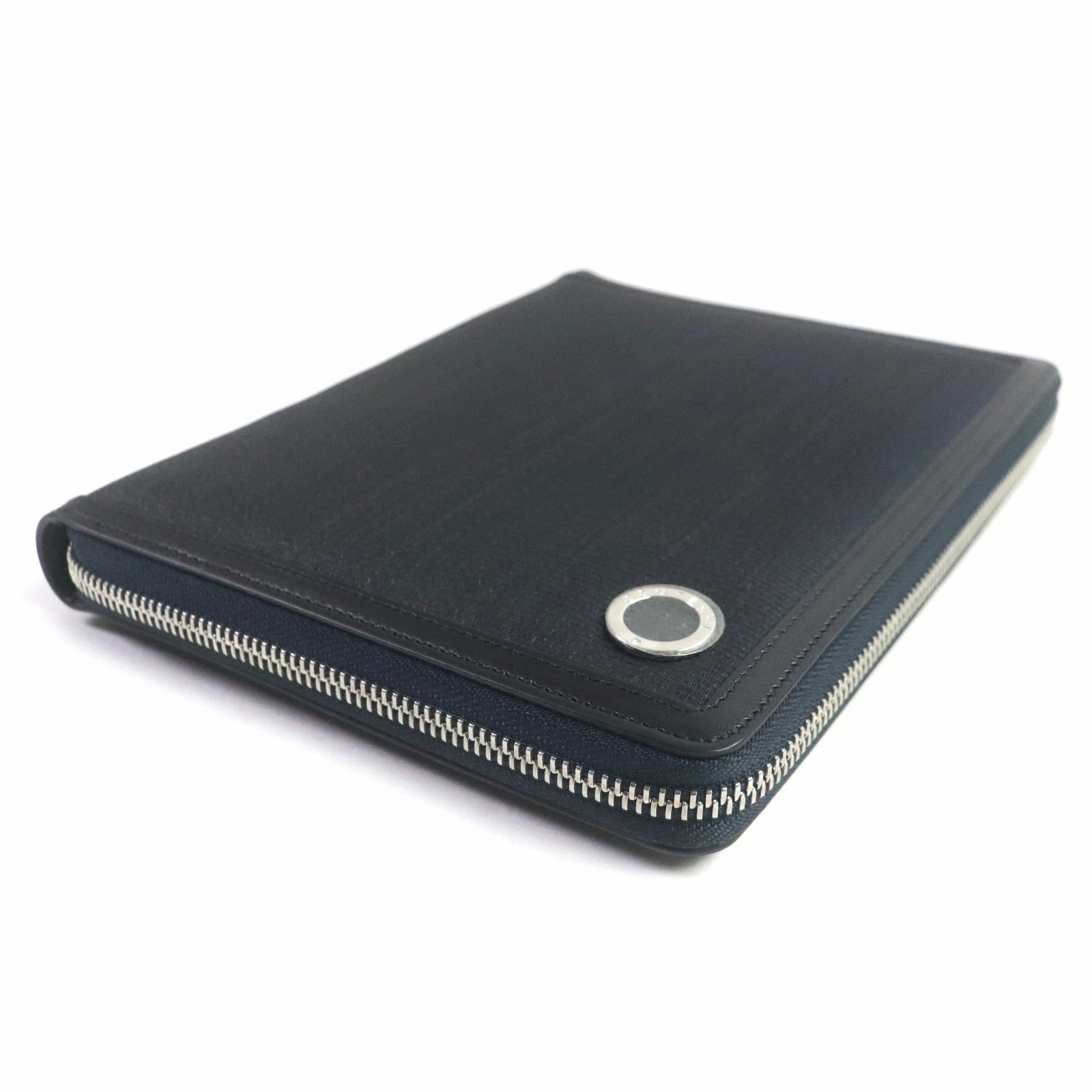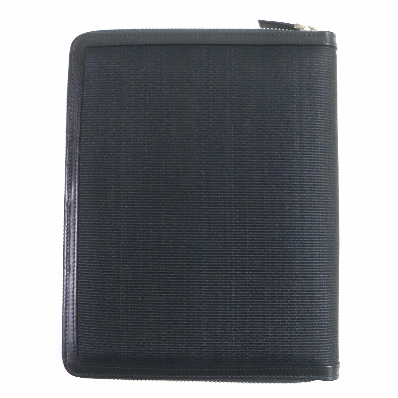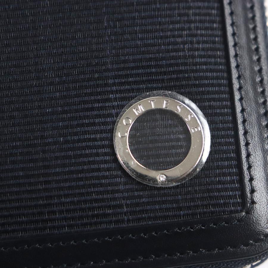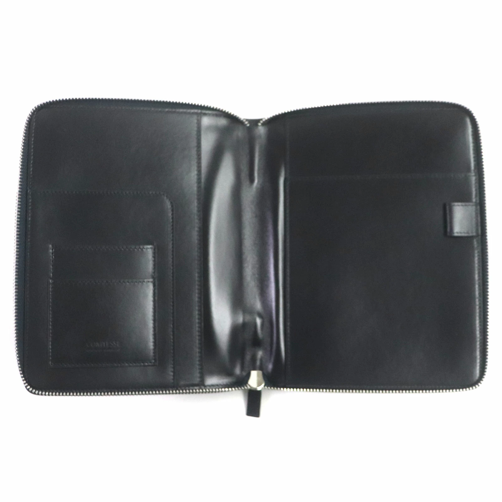 Unused COMTESSE horsehair leather zip-around notebook cover with silver logo hardware, navy, silver hardware, made in Germany, men's [pre-owned]