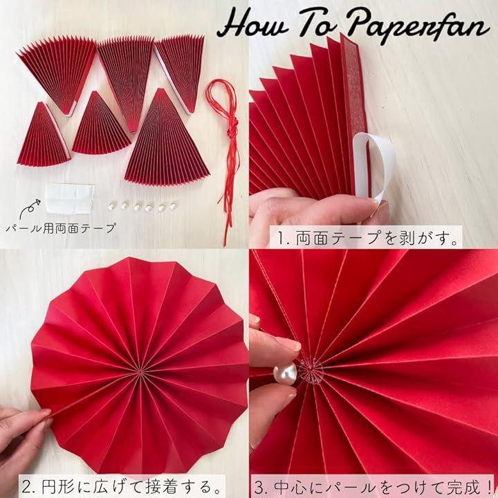 「飾り付けセット」珍しいボルドーカラーのシックなペーパーファンはパールがついて高級感たっぷりの大人デザイン。